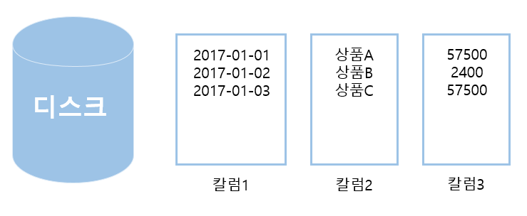 - 분석에 필요한 컬럼만 집계할 수 있도록 열(column) 단위로 데이터를 저장하는 데이터베이스 구조