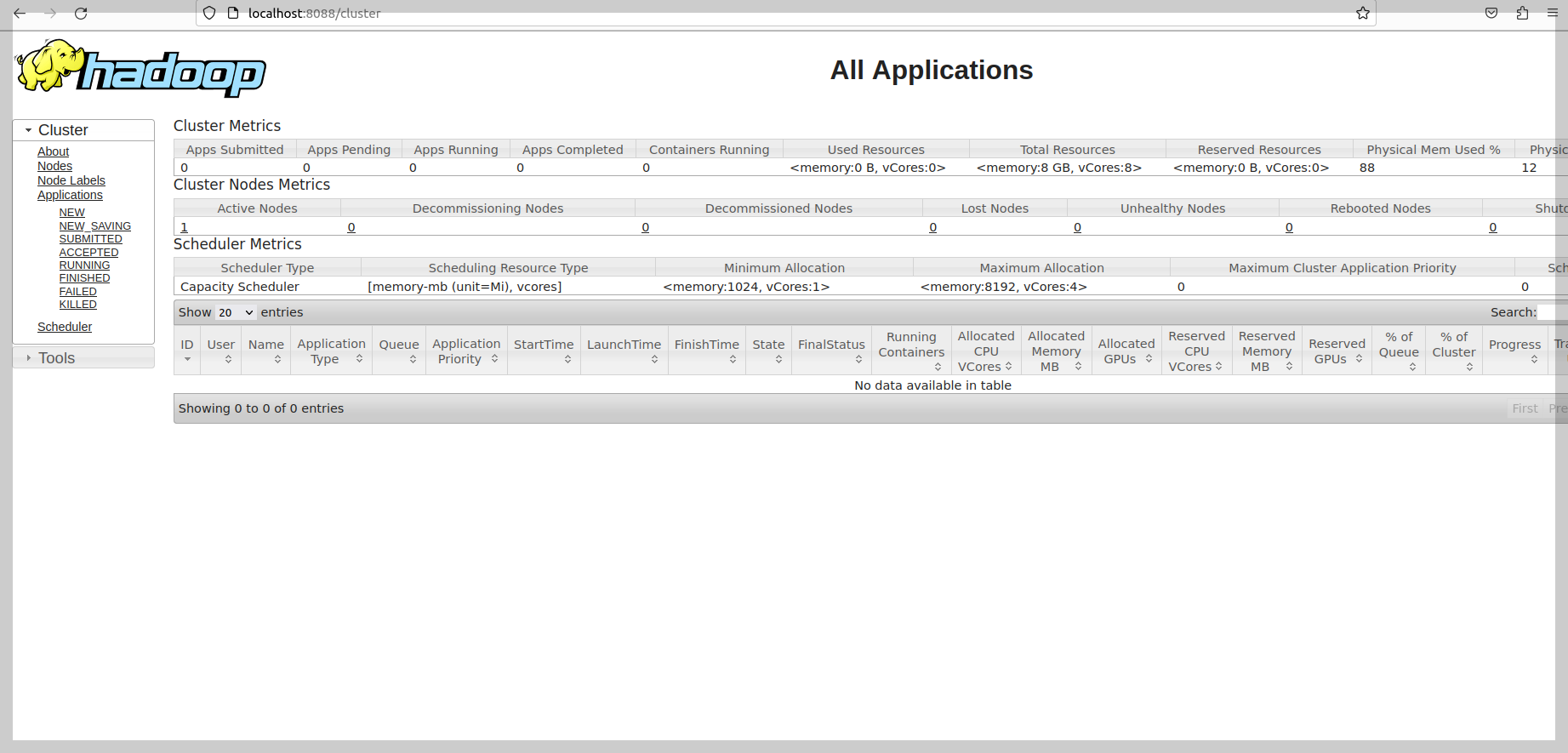8. 하둡 UI 브라우저 접속해서 확인하기