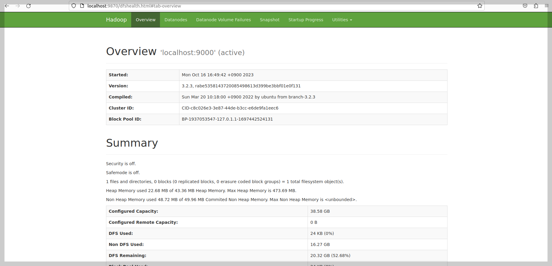 HDFS 네임노드(파일 시스템의 모든 metadata를 추적하는 역할)를 시작하려면 네임노드를 포맷하는 과정이 필요하다.