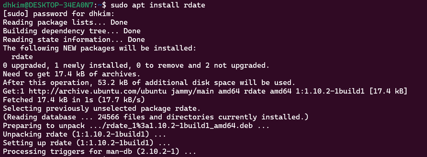 현재 시간 기준으로 Windows, Ubuntu의 시간이 모두 틀어진 상황이 발생했고 두 단계를 통해 문제를 해결해보았다. 먼저, 특정 인터넷 서버 시간과 동기화하여 컴퓨터 서버 시간을 현재 시간과 맞춰주었다. 그리고 동일한 방법으로 Ubuntu 내에서도 해당 서버와 동기화되도록 설정하여 상황을 해결할 수 있었다. 처음보는 상황이어서 문제를 해결하는데에 시간이 많이 들었지만, 다른 사람들은 이 내용을 참고해서 더 쉽게 상황을 해결할 수 있었으면 좋겠다.