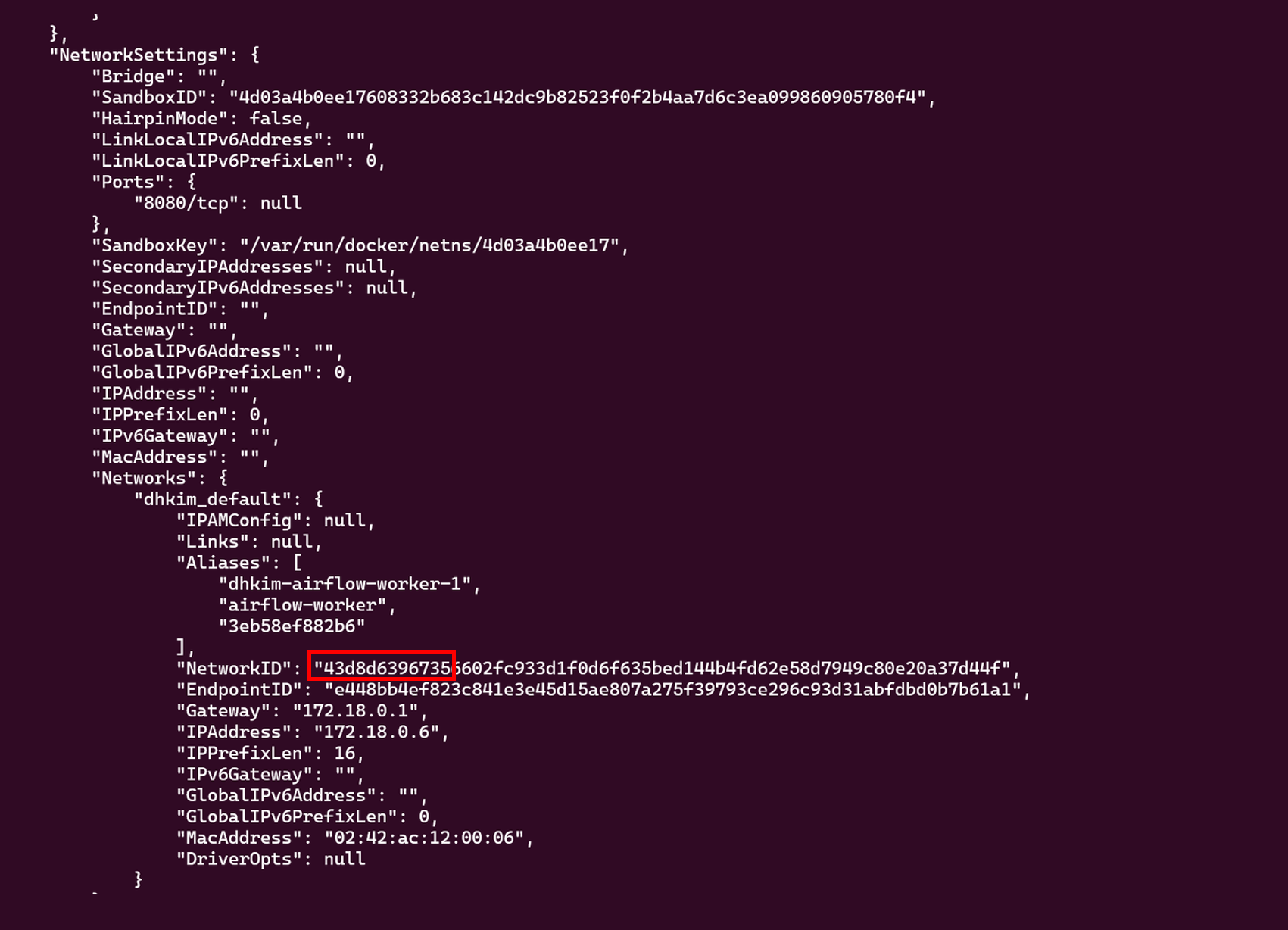 ※ (참고) 컨테이너 상세 정보에서 나온 "NetworkID": "43d8d6396735"는 무슨 네트워크일까?